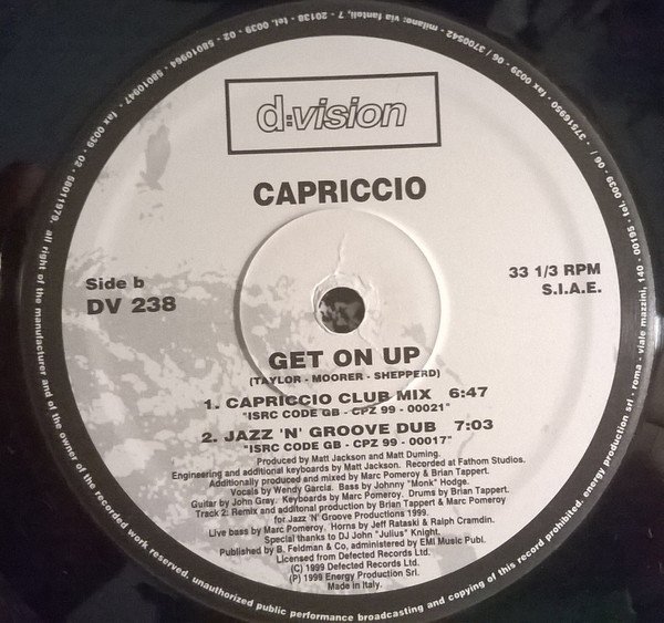 6:40B1 Get On Up (Capriccio Club Mix)6:47B2 Get On Up (Jazz-N-Groove Dub)